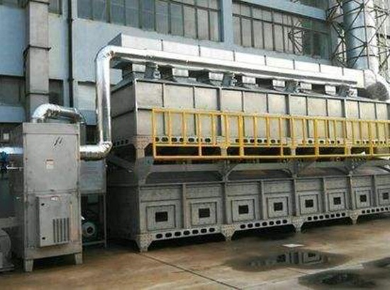 炭經過吸附運行一段時間后達到飽和,啟動系統的脫附-催化燃燒過程,通過熱氣流將原來已經吸附在炭表面的溶劑脫附出來(多床循環脫附),并經過催化燃燒反應轉化生成CO2和水蒸氣等無害物質,并放出熱量,反應產生的熱量經過熱交換部分回用到脫附加熱氣流中,當脫附達到一定程度時放熱跟脫附加熱達到平衡,系統在不外加熱量的情況下完成脫附過程。